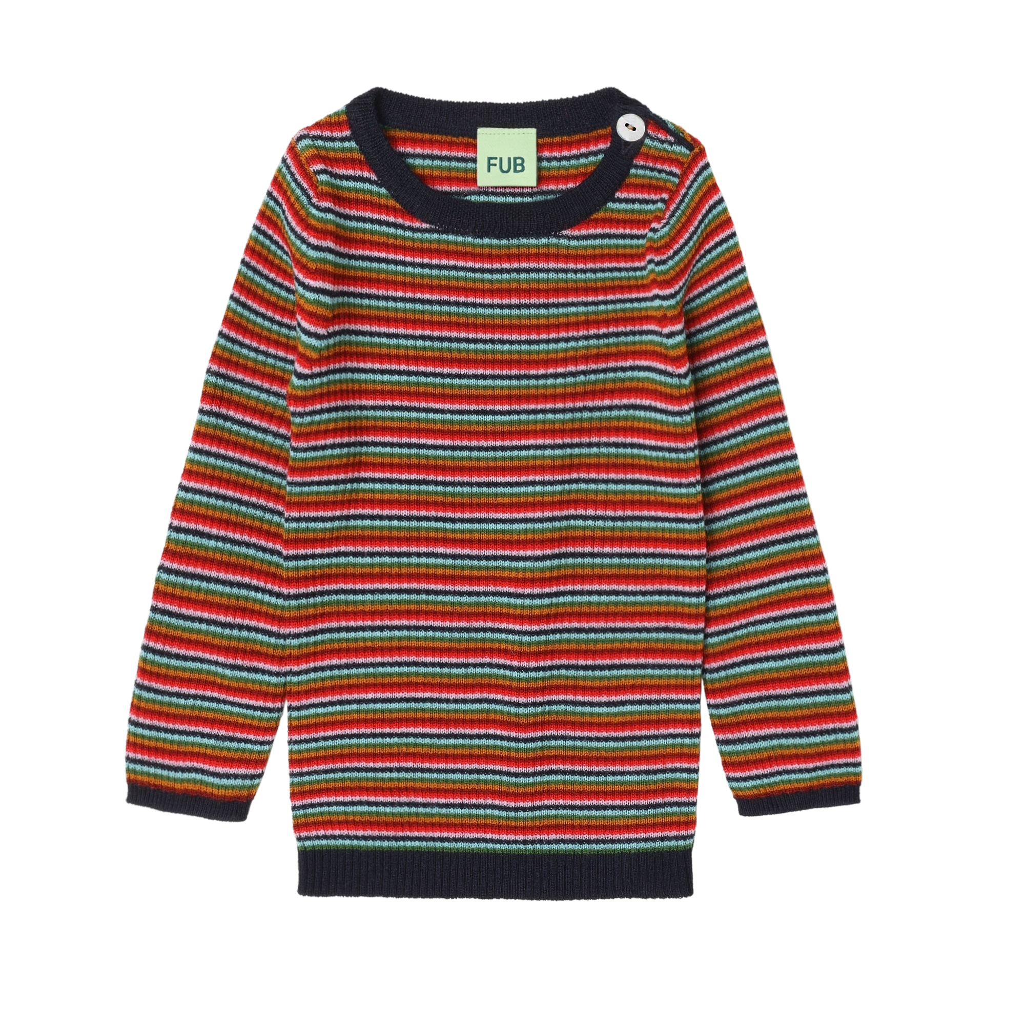 FUB ist eine dänische, zeitlose Strickmarke für Kinder. Gestreifte Pullover, schöne Strickjacken, Stricktops und T-Shirts von höchster Qualität. FUB wählt die weichste Wolle im Winter und verwendet 100% Bio-Baumwolle im Sommer.