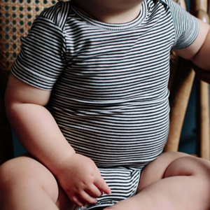 Kurzärmeliger Body aus weichem Bio-Baumwolljersey mit überschnittenen Schultern für einfaches An- und Ausziehen.