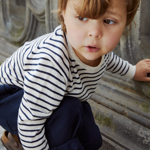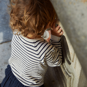 Sweater made of very fine and ultra-soft cotton yarn, with continuous stripes. The lightweight jumper can be easily combined with jeans for a cool look or over a classic shirt for a special occasion.