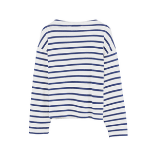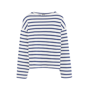 Gefertigt aus mittelschwerem Baumwolljersey. Mit Rundhalsausschnitt, langen Ärmeln und klassischem Streifenmuster in Marine-Optik.