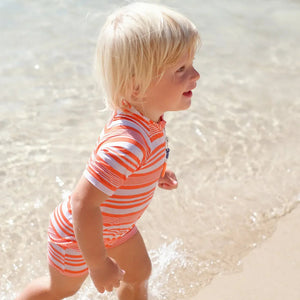 Bietet UV-Schutz 50+, trocknet schnell und sitzt auch nach Stunden noch bequem. Sorgt mit auffälligen Streifen in Orange-Weiss für maximale Sichtbarkeit am Wasser.