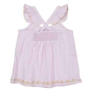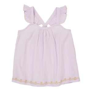 Cute top with ruffles on the straps and pretty embroidery at the hem.