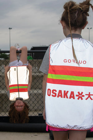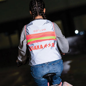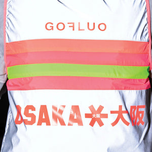 The bodyglower made of reflective material ensures visibility in the dark from up to 150 meters away. The vest also stands out during the day thanks to the bright neon stripes and the cool osaka x GOFLUO motif. It has a soft round neck collar, two side pockets and closes with a zipper.