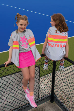 Der Bodyglower aus reflektierendem Material sorgt für Sichtbarkeit im Dunkeln aus bis zu 150 Metern Entfernung. Auch tagsüber fällt die Weste durch die leuchtenden Neonstreifen und das coole osaka x GOFLUO Motiv auf. Sie hat einen weichen Rundhalskragen, zwei Seitentaschen und schliesst sich mit einem Reissverschluss.