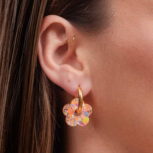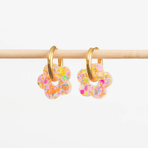 Créolen mit handgefertigten Blumen aus Epoxidharz.