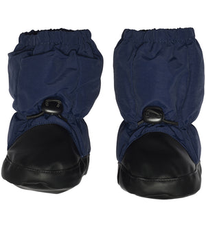 Die Melton Überschuhe sind in Marineblau und bieten guten Schutz für die Füsse. Sie haben einen Gummizug an der Öffnung sowie einen verstellbaren Gummizug mit Schnalle am Knöchel, damit sie gut sitzen. Innen sind sie mit weichem Fleece gefüttert und haben eine wärmende Wattierung. Die Sohle ist mit einer PU-Beschichtung versehen, die bis zur Spitze reicht.