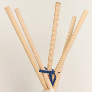 Einfacher Aufbau: Stecke die 5 Holzstäbe in die inneren Kerben und binde die Kordel an der Spitze fest.