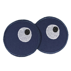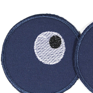 Bügelflicken aus blauer Bio Baumwolle mit gestickten Augen, Set mit 2 Flicken zum aufbügeln.