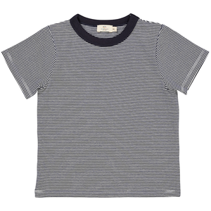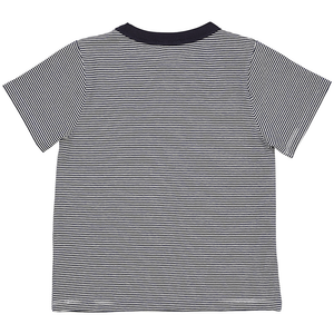Cooles gestreiftes T-Shirt mit kontrastfarbig eingefasstem Halsausschnitt.