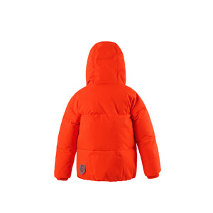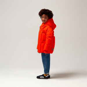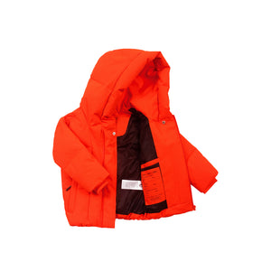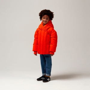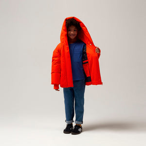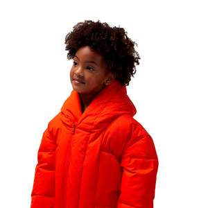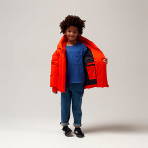 Der hohe Kragen dieser Winterjacke sorgt nicht nur für zusätzliche Wärme am Hals, sondern schafft auch eine coole und interessante Form, während die Farbe dafür sorgt, dass das Kind wirklich auffällt!