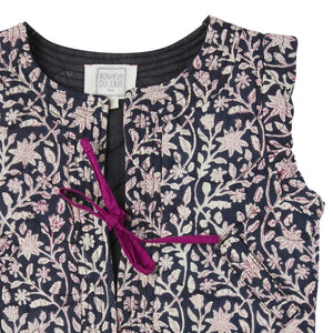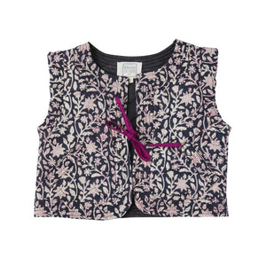 Quilted waistcoat with floral print and pockets. A favourite piece that complements many outfits. It is made from a pretty, soft poplin fabric.