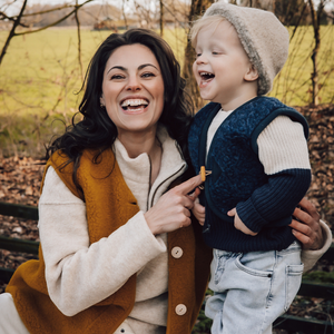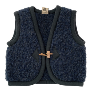 Warme Weste aus Wolle. Wird mit einem Knopf geschlossen.