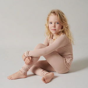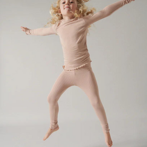 Bequeme Leggings mit süssem Rüschendetail am Beinabschluss. Die Leggings sind sehr weich, dehnbar und angenehm zu tragen.