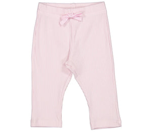 Babyhose mit breitem Gummibund und Bindebändern. Die Hose ist rippengestrickt, weich, dehnbar, atmungsaktiv und angenehm zu tragen.