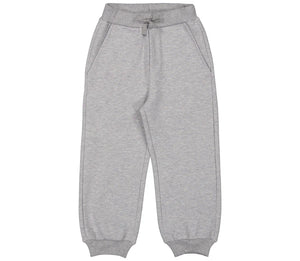 Kids' sweatpants with a loose fit and elasticated waistband and cuffs. The sweatpants have two side pockets and a patch back pocket with an attractive sewn-on logo. They are soft and brushed on the inside, stretchy and comfortable to wear.