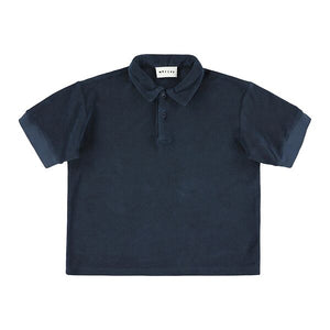 Navyblaues Frottee-Poloshirt aus 100% Baumwolle.