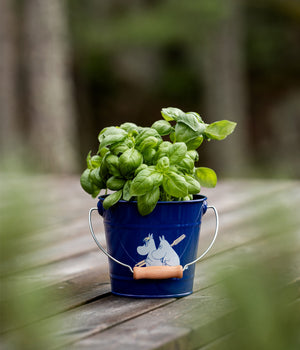 Der Mumin-Eimer dient als Spielobjekt oder zur Aufbewahrung kleiner Gegenstände. Er ist aus verzinktem Stahl gefertigt und hat ein Fassungsvermögen von 2 Litern.