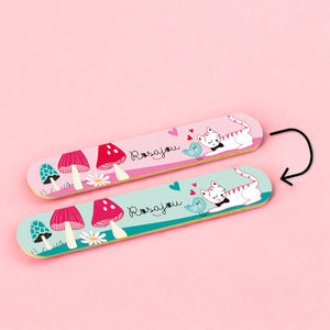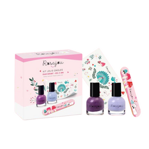Dieses Set enthält zwei wasserbasierte Nagellacke, eine Nagelfeile und ein süßes Tattoo. Die Nägel lassen sich spielerisch vorbereiten, bunt gestalten und mit Tattoos ergänzen – perfekt für kleine Feste und kreative Momente. Die Nagellacke sind vegan und in Frankreich hergestellt, die Feile kommt aus Deutschland.
