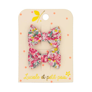 Diese entzückenden Mini-Schmetterlings-Haarspangen von Betsy Emma & Georgina Hibiscus Liberty sind auf 3 cm große Mini-Clic-Clacs genäht und eignen sich perfekt, um die ersten Locken der Kleinen festzuhalten.