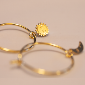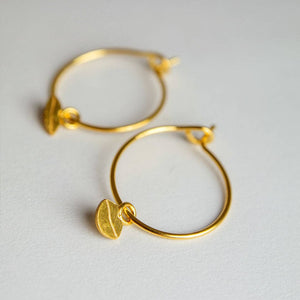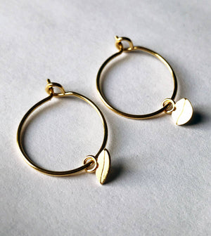 Kleine Creolen aus 24 Karat vergoldetem Messing. Durchmesser Creolen 1.2 cm. Keine Spuren von allergieauslösendem Metall. Hergestellt in Frankreich.