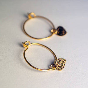 Thick hoop earrings made from 24 carat gold-plated brass. Diameter of hoops 1.2 cm. No traces of allergenic metal. Made in France.