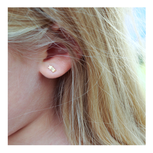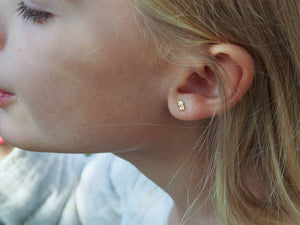 Ohrringe aus 24 Karat vergoldetem Messing. Stiele aus 925er Silber. Keine Spuren von allergieauslösenden Metallen. Hergestellt in Frankreich.