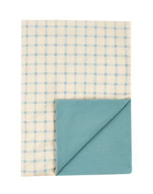 Versatile cotton baby blanket. One side is made of printed cotton voile, the other side is made of extra-soft cotton jersey. It is ideal for comfortable rides in the baby carriage or for cuddling.