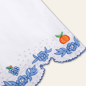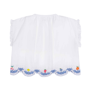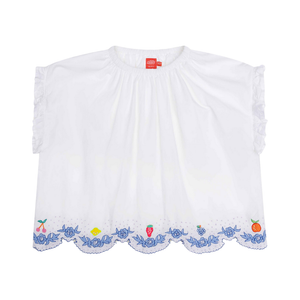 Blouse with a wavy hem, decorated with detailed embroidery. The fit is wide and pleasantly airy.