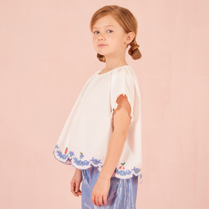 Bluse mit Wellensaum, verziert mit detaillierter Stickerei. Die Passform ist weit und angenehm luftig.