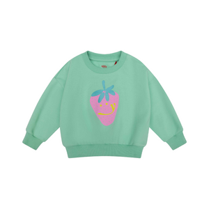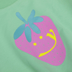 We just can't get enough of sweet things. Just like this smiling strawberry on the loose-fitting mint green sweater - sweet meets sweet!