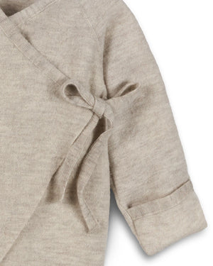 This wollen overall is made from fine, milled wool. It is very comfortable to wear, supports freedom of movement and keeps the baby warm, while the side binding technique makes it easy to put on and take off. The wool is naturally water and dirt repellent and antibacterial, which makes it easy to care for.