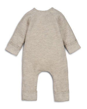 Der Overall besteht zu 100% aus GOTS-zertifizierter Schurwolle. Er ist frei von Pestiziden und synthetischen Farbstoffen und wird mit viel Hingabe in einem Familienbetrieb gefertigt, der seit 1928 besteht
