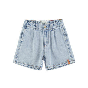 Shorts aus gewaschenem blauem Denim mit elastischem Bund.