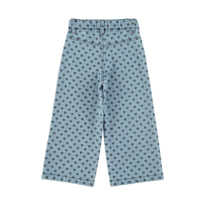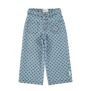Aus gewaschenem Baumwoll-Denim in Hellblau mit schwarzen Herz-Prints. Weicher Griff, stabile Qualität. Mit klassischem Bund, Reissverschluss und Knopf.
