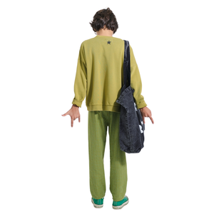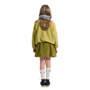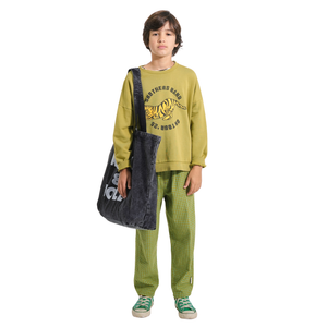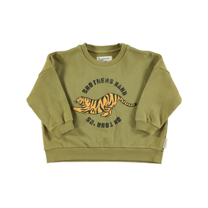 Das Sweatshirt hält angenehm warm und bietet ein super weiches Tragegefühl. Der coole Tigerdruck in Schwarz auf dem olivgrünen Grund sorgt für einen wilden, aber stylischen Akzent – perfekt für kleine Trendsetter:innen.