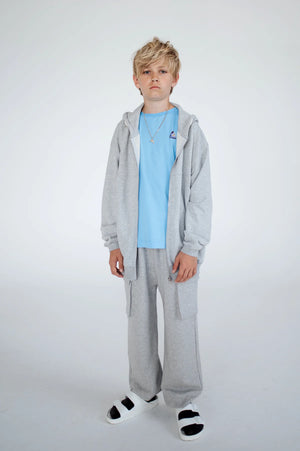 The cargo sweatpants are made from 100% organic cotton and have a wide, loose fit. They have two cargo pockets, side pockets, an elasticated waistband with drawstring and elasticated cuffs at the ankles. Ideal for a comfortable, casual look.