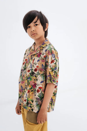Dieses locker geschnittene Hemd mit Blumendruck aus leichter, gewebter Bio-Baumwolle, bietet den ganzen Tag über luftigen Tragekomfort und eignet sich perfekt als elegantes Outfit, aber ebenso gut für legere Anlässe. Es ist locker und kastenförmig geschnitten und hat überschnittene Schultern, einen kubanischen Kragen, eine Brusttasche und einen Knopfverschluss vorne.