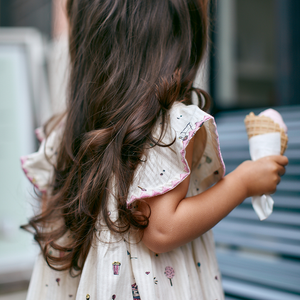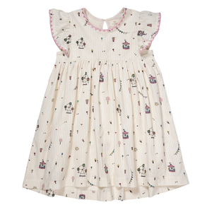 Mit diesem unwiderstehlich süssen, bedruckten Kleid mit rosa Paspel am Rüschensaum sind dem Spiel keine Grenzen gesetzt. Das Kleid ist aus 100% Bio-Baumwolle und hat eine gewebte Schaftstruktur. Es ist so geschnitten, dass man sich darin gut bewegen und unbeschwert spielen kann. Das Kleid ist pflegeleicht und behält auch nach mehrmaligem Waschen seine Form;