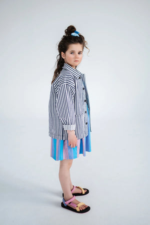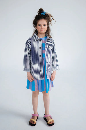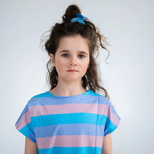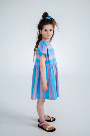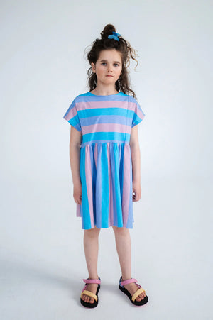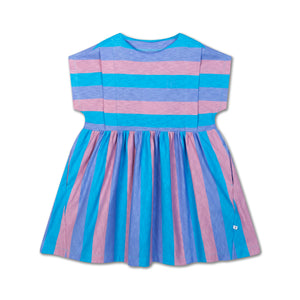 Das dreifarbige Blockstreifen-Kleid ist aus weicher, garngefärbter Bio-Baumwolle gefertigt.
