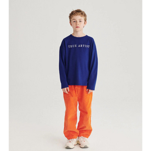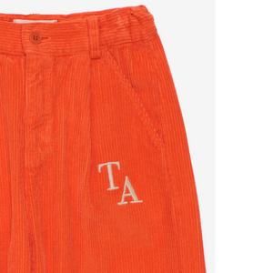 The nº01 trousers in persimmon orange are made from 100% cotton corduroy and have the True Artist logo embroidered on the front. The comfortable chino trousers have an adjustable waistband, slanted piped pockets and a zip with button fastening. They have a cocoon fit.