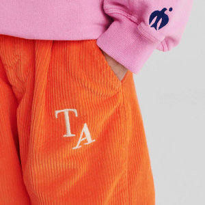 Die Hose nº01 in Persimmon Orange ist aus 100% Baumwollcord gefertigt und hat das True Artist-Logo auf der Vorderseite aufgestickt. Die bequeme Chino-Hose ist mit einem verstellbaren Bund, Schrägpaspeltaschen und einem Reissverschluss mit Knopfverschluss ausgestattet. Sie hat eine kokonartige Passform.