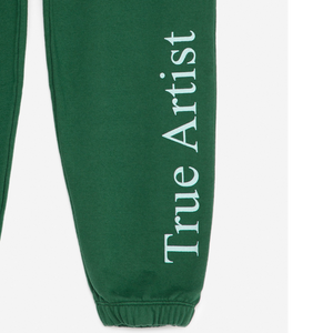 The sweatpants nº05 in Verdant green are made of cotton fleece and have the True Artist logo on the leg. The trousers have an elasticated, adjustable waistband and slash pockets. They have a loose fit