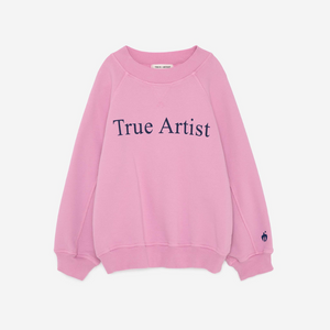 The nº01 sweatshirt in Lilac Pink is made from cotton fleece and features the True Artist logo on the front. It has a loose fit, raglan sleeves and ribbed cuffs and hem. A bird is embroidered on the sleeve.