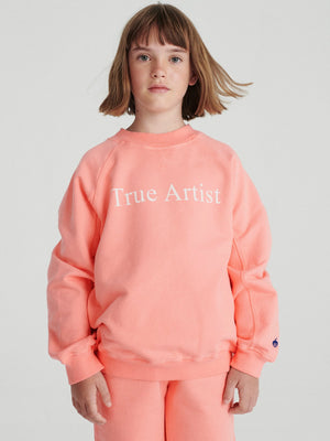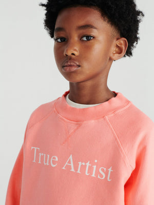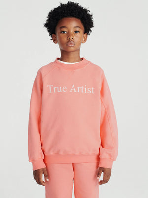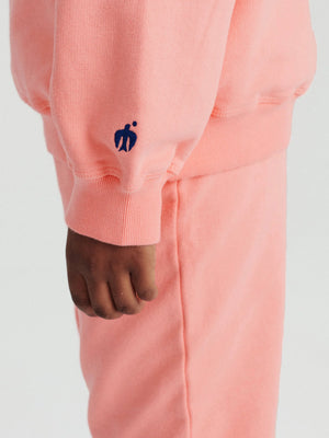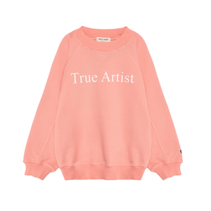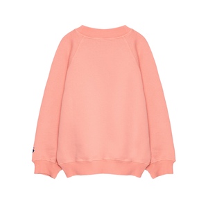 Das Sweatshirt nº01 in dusty peach besteht aus 98% Bio-Baumwolle und 2% Elastan. Es hat eine lockere Passform, Raglanärmel, gerippte Bündchen und ist am unteren Ende der Ärmel mit dem TA-Vogel-Logo bestickt.