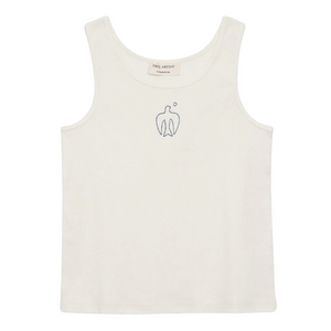 Tank-Top mit Rundhalsausschnitt und kontrastfarbener Vogel-Stickerei auf der Brust.