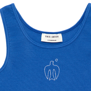Tank-Top mit Rundhalsausschnitt und kontrastfarbener Vogel-Stickerei auf der Brust.