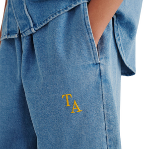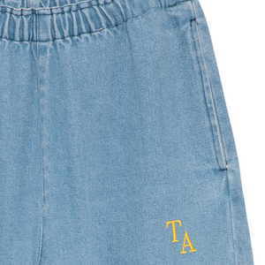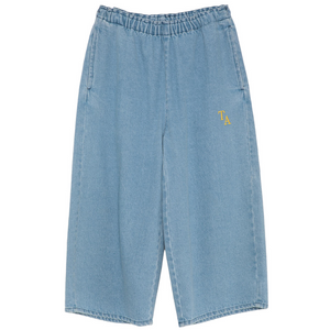 Denim-Culotte mit weiter Passform und elastischem Bund aus 100% Bio-Baumwolle. Hergestellt in Spanien.