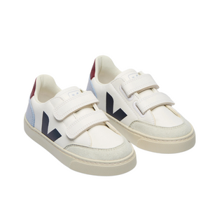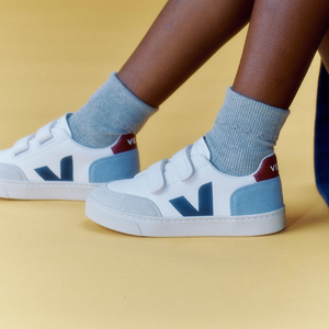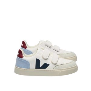Der Small V-12 Extra-White Multico-Steelvon von Veja ist ein nachhaltiger und bequemer Sneaker für Kinder. Sein Obermaterial besteht aus chromfreiem Leder, das ohne den Einsatz von Chrom, Schwermetallen oder gefährlichen Säuren gegerbt wird. Die Farbgebung in Extra-White wird durch mehrfarbige Details und Akzente in Steel ergänzt, was dem Schuh einen modernen und sportlichen Look verleiht. Die Sohle wird aus Amazonas-Gummi und weiteren recycelten Materialien gefertigt und sorgt für eine gute Haltbarkeit. Das Innenfutter besteht aus 100 % recyceltem Polyester. Durch die Klettverschlüsse lässt sich der Schuh einfach an- und ausziehen. Der Small V-12 kombiniert nachhaltige Materialien mit funktionalem Design und ist ideal für den täglichen Gebrauch.