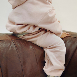 Diese locker sitzende, zeitlose Hose ist aus weichem Bio-Baumwollfleece gefertigt. Die Unisex-Hose hat einen elastischen Bund mit verstellbarem Kordelzug, elastische Bündchen und seitliche Eingrifftaschen.
