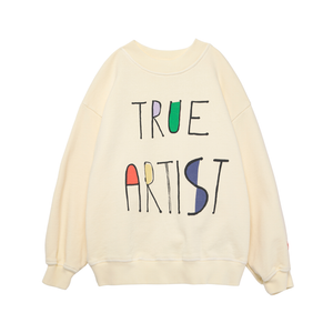 Das Sweatshirt Nr. 11 in Soft Yellow besteht aus 98 % Bio-Baumwolle und 2 % Elasthan-Fleece. Es verfügt über einen runden, gerippten Ausschnitt, überschnittene Schultern und Rippbündchen an Ärmeln und Saum. Es hat eine lockere Passform.